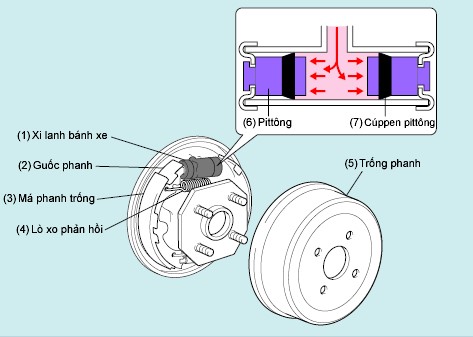 Ngoài ra còn có dây phanh , tổng phanh , tay phanh , ống dẫn dầu , bình chứa dầu phanh