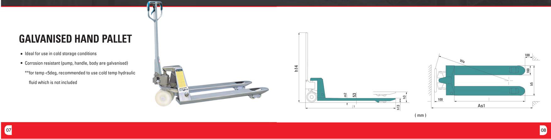 Xe nâng tay chống rỉ mạ kẽm galvanised và xe nâng tay dùng trong kho lạnh